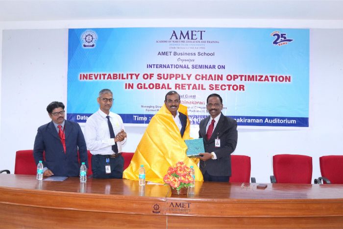 AMET Business School organized International Seminar on Inevitability of Supply Chain Optimization in Global Retail Sector held at Shri Janakiraman Auditorium, on 13 Mar 2019