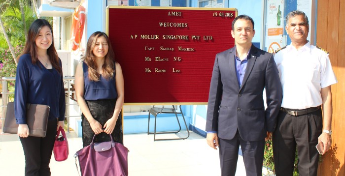 Capt. Sourab Mahesh, Ms. Elaine NG and Ms. Raine Lim M/s.AP Moller Singapore Pvt. Ltd.visited to recruit our cadets, on 19 Mar 2018